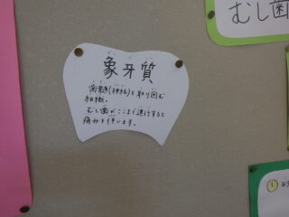 「いい歯の日」についての掲示物 投稿日:2025年11月10日2025年11月10日 11月8には「いい歯の日」です。これは「いい(11)歯(8)」の語呂合わせにちなみ、日本歯科医師会が1993年に制定した日です。この日は、生涯にわたって自分の歯で食事などを楽しむことを目的とした「8020運動」の一環として、口腔衛生の重要性を啓発するために設けられたそうです。 加太中の中央階段の2階と3階の間の踊り場の、養護の先生制作の健康に関する掲示も、今月は「歯」についてです。今月の掲示も「へ~!そうだったんだ!」が一杯です。学校開放期間に来校されるみなさまにも是非見ていただきたいです!