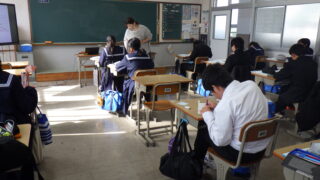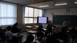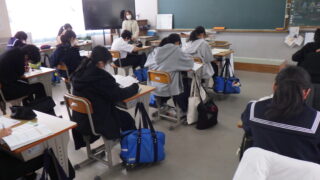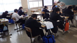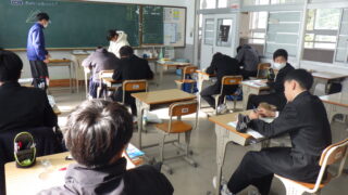 本日の授業風景 投稿日:2025年11月18日2025年11月18日 5時間目 1年生は理科 先生の質問に大きな声で答えていました。 2年生 英語 定期テスト前 復習に余念がありません 教室はシ~ンとしていました 3年生 数学 元気でした なぜか教室の窓を全開にしていました さむ~ インフルエンザの感染対策のため?それとも修行? 心配する先生を横目に、ゆうゆうとコンパスを操る受験生たちでした