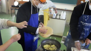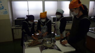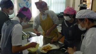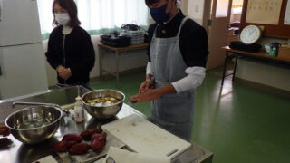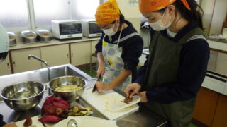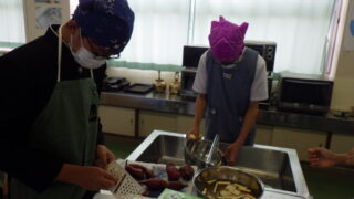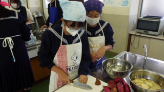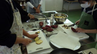 技術科の授業で収穫したサツマイモを使って、「素揚げ」の調理実習に挑戦しました。