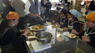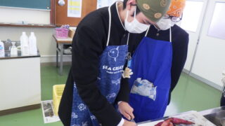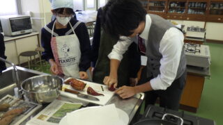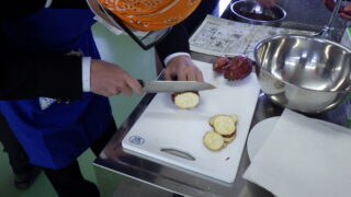 生徒たちの様子を見守っていた先生たちでしたが、「こわいよ!」「猫の手!」と安全指導の声が飛び交い、ついに我慢できずに作業に参入!悪戦苦闘する生徒たちの手助けをする場面もありました。