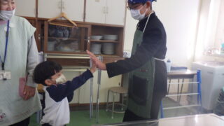 最後に、園児さんたちが「おいしかったです ごちそうさま、作ってくれてありがとう」と声を揃えて元気に挨拶してくれました。すると、中学生たちも同じように大きな声で「どういたしまして、また遊ぼうね」と応える姿が見られました。(どっちもかわいい!)