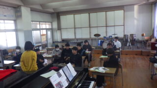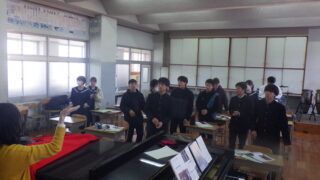 3年生 音楽「クイーン」でノリノリ! 投稿日:2025年12月16日2025年12月16日 3年生は、Queenの「We Will Rock You」に合わせてコール&レスポンスを体験しました。教科書にQueenがのっているんですね。 初めは少し照れていた生徒たちですが、次第に打楽器のタイミングにうまく合わせ、笑顔に。楽曲のリズムである「ドンドンパン!」を足踏み・手拍子で表現し、音楽の持つ一体感と楽しさを肌で感じる時間となりました!
