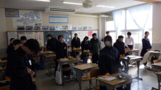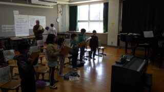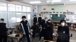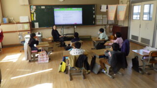 小学校は、1年生は「6年生を送る会」に向けて、みんなで集まって司会原稿の相談をしていました。卒業式に向けて「元気な歌声」を響かせている学年や、理科の授業をがんばっている学年がありました。