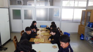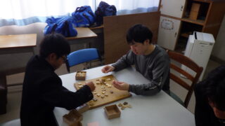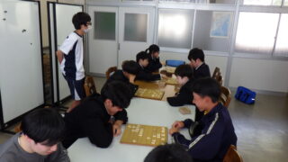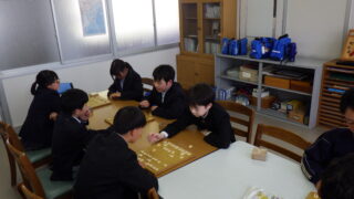将棋部が、にぎやかに始動しました。 「将棋部」は、市内の中学校において、たぶん本校にしかない珍しい部活です。今日は先生も対局に参戦! 笑顔があふれ、活気ある対局が繰り広げられていました。