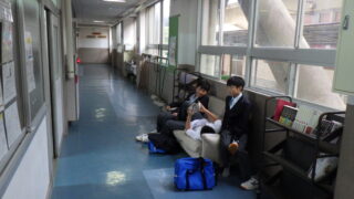 学校生活にも慣れ、朝のひとときを図書室前でゆったりと過ごす1年生。本を囲んでリラックスする姿が、とても微笑ましいです。