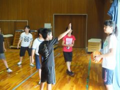 バスケットクラブと陸上クラブの練習風景