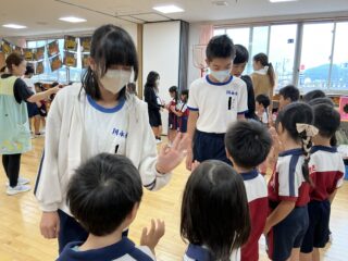 三宝幼稚園との交流 投稿日:2025年10月17日 10月16日(木)、本校の6年生が、三宝幼稚園に行き、園児たちと交流をしました。楽しそうに活動する姿が、たくさん見られました。また、交流があるといいですね。