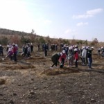 農林水産課の方々にお世話になり、植え方も教えていただいて300本ぐらい植えました。