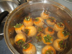 日が経つにつれ、色や形が少しずつ変わってくるのが楽しみです。できあがった渋柿は、鏡餅を飾るときに使う予定です。
