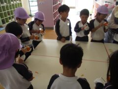この渋柿作りが始まると、年長さんたち来年は1年生になるんだなぁ、大きくなったなぁと思います。子供達が、大きくなって成長していくのを嬉しく感じる気持ちと、かわいい子供達が幼稚園を巣立っていく寂しさも感じています。
