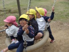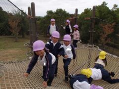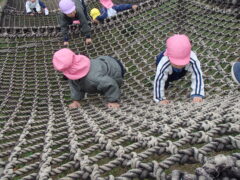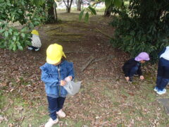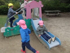到着すると、すぐに網の遊具やブランコ・滑り台で遊びました。ドングリや落ち葉を拾っている子供もいました。