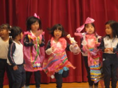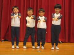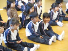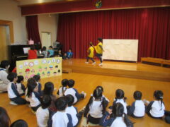 当日は、「さんぽ」に合わせて歩いたり止まったり・じゃんけん列車・ふじ組さんからのお楽しみ(クイズチーム・ダンスチーム・どんぐりころちゃんチーム)・クレヨンのくろくんの劇遊び・歌を企画してくれました。