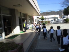 幼稚園に戻って担任が子供達に聞いてみると、「勉強をさせてもらったのが楽しかった。」「パソコンと漢字が楽しかった。」「給食の服を着させてくれて嬉しかった。」「図工が楽しかった。」「漢字が難しそうと思って緊張したけど、紀伊幼稚園に帰りたくないくらい楽しかった!」と一人一人が楽しかったこと、嬉しかったことを伝えていました。