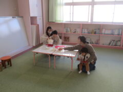 今回は家庭教育指導員の方々にお越しいただき、手遊びやふれあい遊びをして楽しみました。