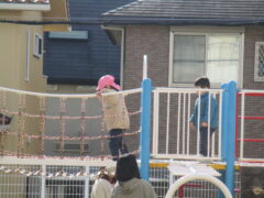 到着すると、すぐに網の遊具やブランコ・滑り台で遊びました。ドングリや落ち葉を拾っている子供もいました。