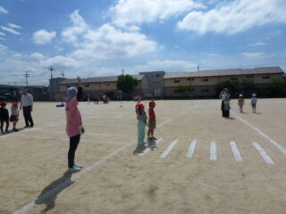 横断歩道をわたる前は、「右、左、右」をしっかりと確認すること、手を挙げてわたることなどを改めて教えていただきました。