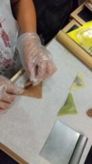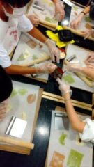 八つ橋作りに挑戦です。みんなとっても楽しそうです。できたものは、おみやげに持ち帰ります。