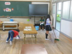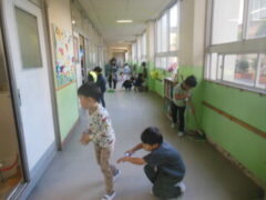 今日から、おそうじも始まりました。6年生に教えてもらいながら頑張っています。
