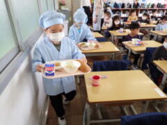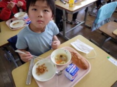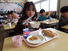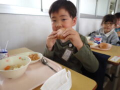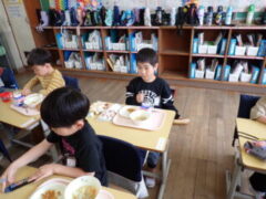 楽しみにしていた給食の時間です(1年生) 投稿日:2026年4月17日 今日から、給食が始まりました。楽しみにしていた時間の始まりです。給食の時間の約束事、覚えることがたくさんあるけど、少しずつ覚えてくださいね。 ゆっくりかんで、しっかり食べて大きくなってくださいね。