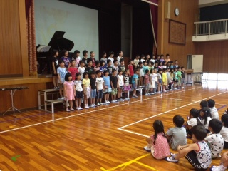 物語の暗証や合唱、斉唱、合奏と元気な声、明るい声、美しい音色で発表できました。どの子も緊張した面持ちで、晴れの舞台の空気を味わったようです。お家の方も大勢、鑑賞に来てくださっていました。