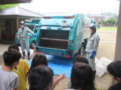 4年生の社会科の学習で、パッカー車が出前授業に来てくれました。
