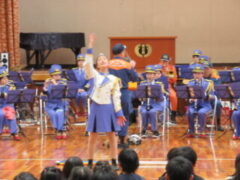 1時間目、体育館で6年生と向かい合い、歌と言葉を送りました。