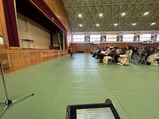 〇令和7年度楠見中学校新入生説明会を本校体育館で2月4日(水)に開催しました。
