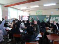 カカオ教室🍫 投稿日:2025年12月18日 3,4,5年生は本日チョコレートの出前教室を行いました! チョコレートで有名なMeijiさんが来られて、 チョコレートは何からできている?やどこから来ているのか、作っている工程など、 わかりやすく説明してくれました! カカオ75%のチョコとミルクチョコで食べ比べがあり、 にっが!やあま~い♡といった反応がありました。 チョコレートのことを深く知れる授業でしたね(⌒∇⌒)