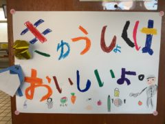 今はコロナ禍で、わいわいとおしゃべりしながら食べることができないのは残念ですが、1年生のみんなは静かに決まりを守って食べることができていました。