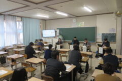 明和中学校区の和歌浦小学校、名草小学校、浜宮小学校と明和中学校の先生方が集まり、小学校から中学校までの9年間の成長を見通し連携が図れるような実践発表でした。