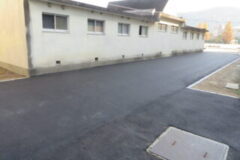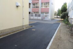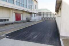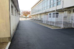 令和8年度から始まる学校給食に向けて給食の搬入路の舗装工事が完了しました。いままでのデコボコ道がきれいになって、全員給食が楽しみです。(^_^)v