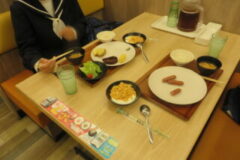 修学旅行2日目になりました。すこし眠そうな顔でしたが、朝食を食べて元気いっぱい (*^^)v