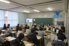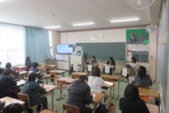 明和中学校区の和歌浦小学校、名草小学校、浜宮小学校と明和中学校の先生方が集まり、小学校から中学校までの9年間の成長を見通し連携が図れるような実践発表でした。