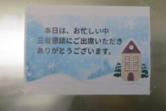 担任の先生と、学校での生活や学習の様子、冬休みにむけて懇談を行っています。 冬休みが有意義に過ごせるように目標をしっかり立てよう。3年生は卒業後の進路について考える時期になってきました。(^_^)v