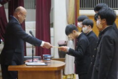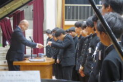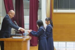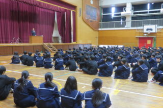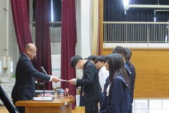 終業式で、「感謝の気持ちを伝える」ことをお願いしました。自分の周りには支えてくれている人が多くいます。学校では、先生や友だち、家では家族。自分の知らないところですごく支えてくれていると思います。その方々に感謝の気持ち「ありがとう」を伝え、今年1年を締めくくってください。そして気持ちを新たに新年を迎えてほしいと思います。