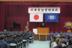 この言葉には、これからの人生を歩むみなさんへの温かな励ましが込められています。 この言葉と共に、 大切にしてほしい三つのことを卒業生のみなさんに伝えました。