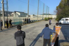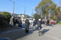 交通事故ゼロを目指して、明和中学校前・医大病院前交差点などで交通指導を実施していただきました。和歌山西署、県教育委員会、市教育委員会、県立医大病院、近隣の高等学校など地域の方々が参加していただきました。