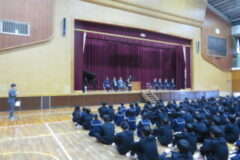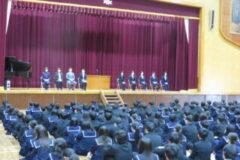 令和8年度 新任式 投稿日:2026年4月7日 今回の人事異動で、10名の先生方が着任されました。お名前や教科、前任校を紹介しました。 生徒会代表より挨拶があり、歓迎の気持ちを伝えてくれました。 着任された先生方、よろしくお願いいたします。
