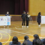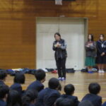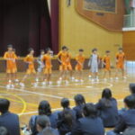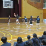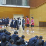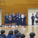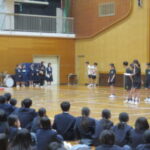 体育館で各部活動の紹介を行いました。実演もあり、盛り上がりました。先輩たちの活動を見てすごさを感じました。