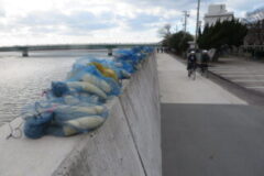 学校の周りで布引大根を並べています。寒さに当てることでおいしさが増すそうです。