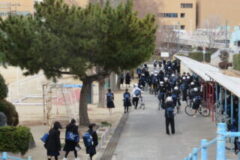 生徒の下校の様子です。元気よくあいさつして帰ってます。
