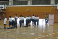 体育館で各部活動の紹介を行いました。実演もあり、盛り上がりました。先輩たちの活動を見てすごさを感じました。