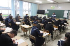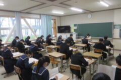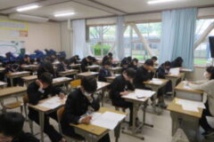 全国学力学習状況調査を3年生で実施しました。 本日は英語の「読むこと」・「書くこと」・「聞くこと」と、生徒質問調査を実施しました。