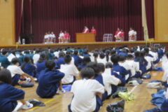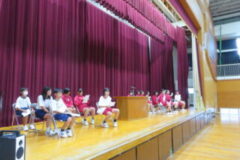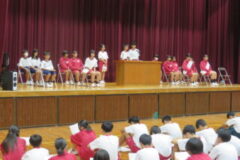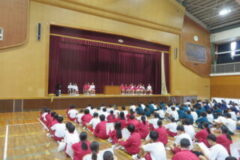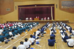 体育館に全校生徒が集まり、会長・副会長・書記に立候補した候補者が、全校生を前に公約と自己PRをしっかりとした口調で伝えることができました。また、それぞれの応援演説で候補者の推しのポイントを伝えてくれました。