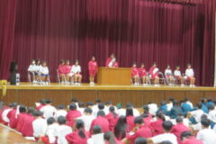 生徒会本部役員選挙の立会演説会があり、選挙管理員会が中心となり運営してくれました。