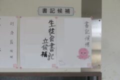 生徒会本部役員選挙の選挙活動が始まりました。公約を掲げて選挙活動で朝の登校時間でしっかりアピールしています。