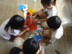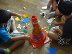 今年の3年生の競技は、コーンを倒したり、起こしたり。。。