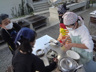 野菜を切って、飯盒でお米を炊くのは大変だったけれど、