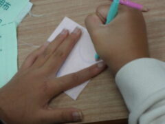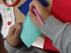 10/ 31【5年生】ポーチづくり(家庭科) 投稿日:2025年10月31日2025年10月31日 今日は、楽しみにしていたポーチづくりです!! ポーチの飾りを星にするのか花にするのか・・・悩みました。 決まったら、デザインをチャコペンで書いて、はさみで切って、 完成のイメージを高めていきました。 出来上がりが楽しみです!