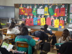 黒板にみんなが作ったステキなサンタのくつが飾られて、冬休みがたのしみです。
